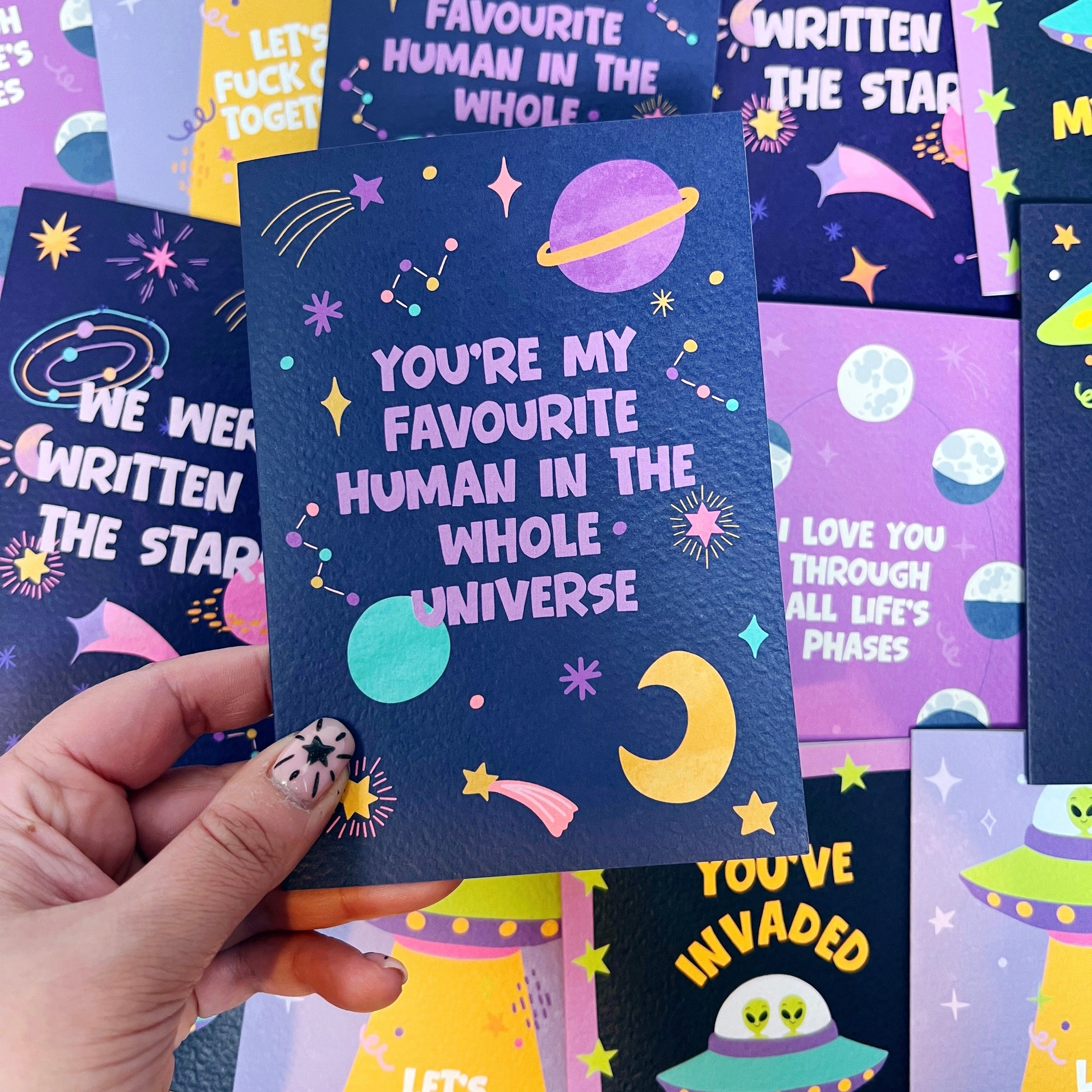 Tell them just how special they are with this 'You’re My Favourite Human in the Whole Universe' greeting card. A sweet and playful way to celebrate love, friendship, or that one person who means absolutely everything to you.